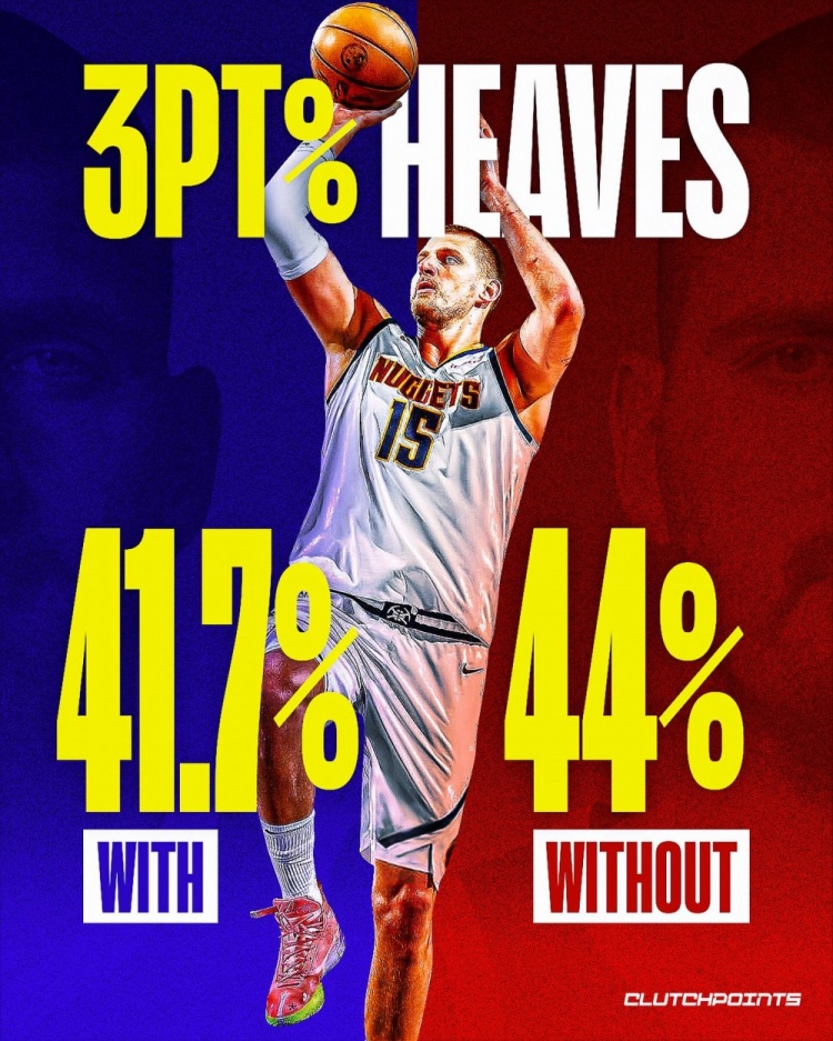 这类投篮中,约基奇上赛季以22次出手领跑全联盟。据美媒Clutchpoints统计,若按照新算法,约基奇上赛季的三分命中率将从41.7%升至44.0%,整体投篮命中率从57.6%升至58.4%。